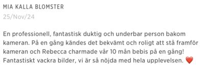 Jag tar emot ett begränsat antal fotograferingar varje månad, så jag rekommenderar att höra av sig i god tid.