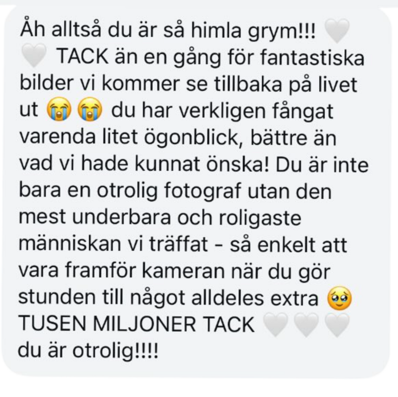 Jag fotar inte i studio eller inomhus om jag absolut inte måste, utan lägger stor omsorg och kärlek på att välja platser som passar för just er fotografering.